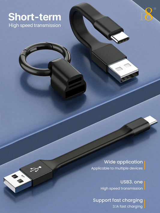 D8 USB-C Keychain Cable – 10CM USB-A to USB-C Charging & Data Transfer