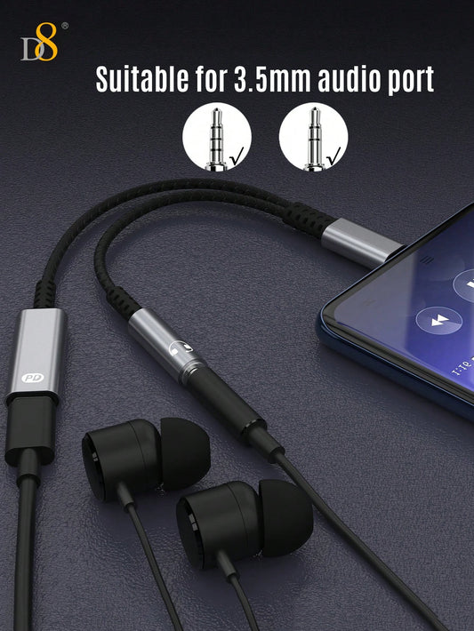 D8 USB-C to 3.5mm Headphone & Charger Adapter – 60W PD Audio Dongle