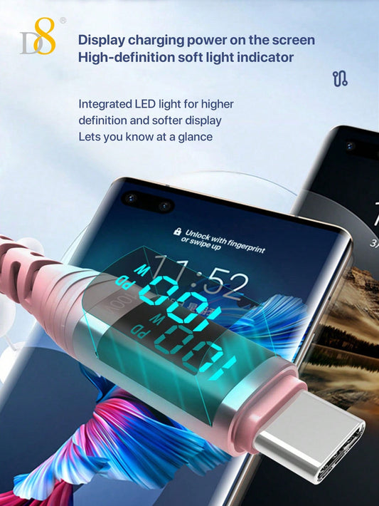D8 USB-C Cable, 100W/5A Fast Charger with LED Display for iPhone/Galaxy/iPad