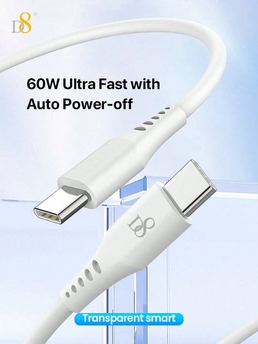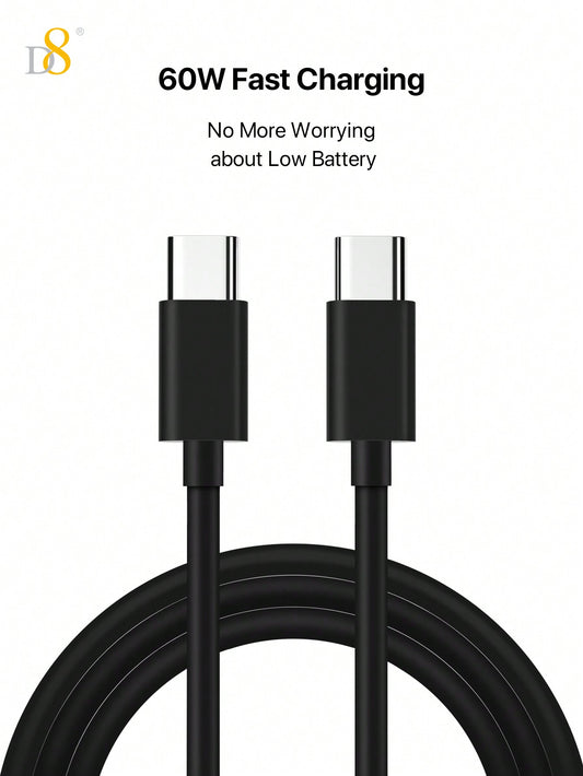 D8 USB-C to Type-C Cable – 60W Fast Charging, 3.3ft Braided Cord