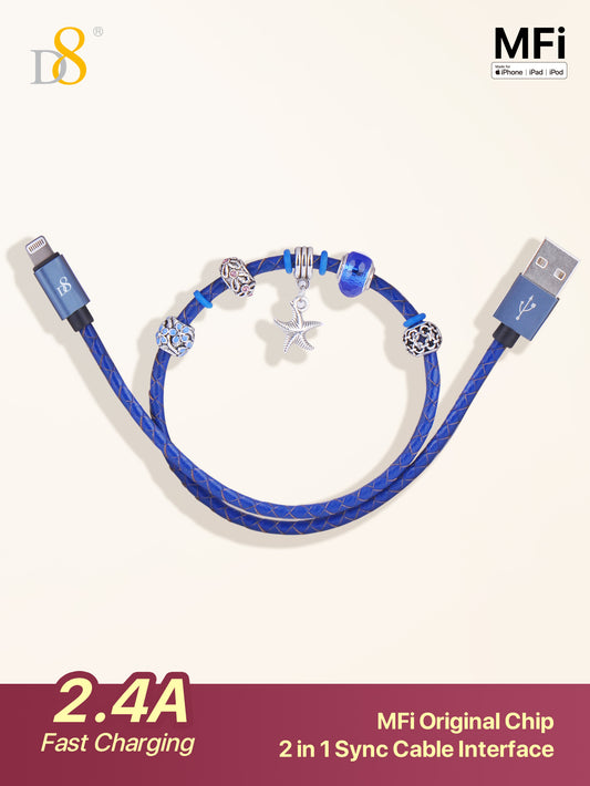 D8 Beaded Apple MFi Certified Cable | 2-in-1 Handmade Fashion USB Charger