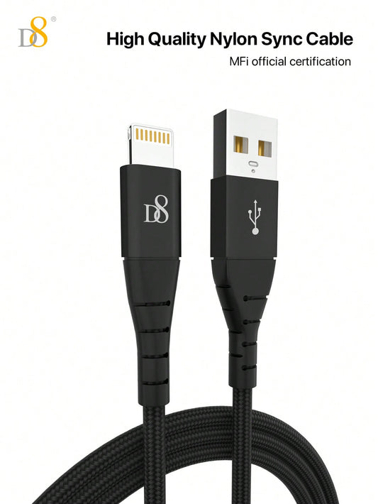 D8 iPhone Charger Cable MFi Certified USB-A to Lightning Fast Charging Multiple Lengths