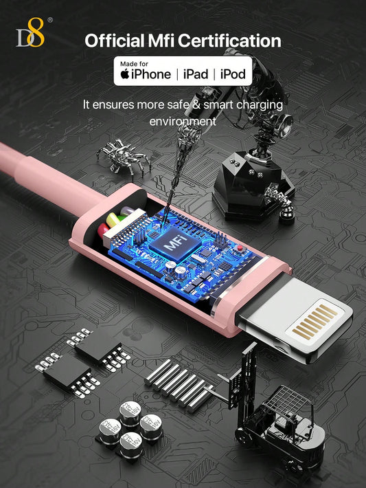 D8 USB-C to Lightning Charger Cable 1.2M – MFi Certified, 2.4A Fast Charging