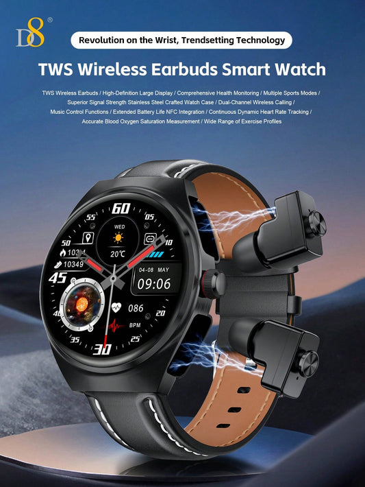 D8 Smart Watch + Earbuds – Fitness Tracker, 100+ Sports Modes, Waterproof for iOS & Android