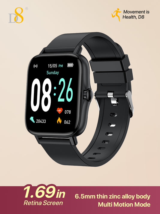 D8 Smart Watch – Heart Rate & Sleep Tracker, IP67 Waterproof, Full Touch, Activity Tracker for Android & iOS