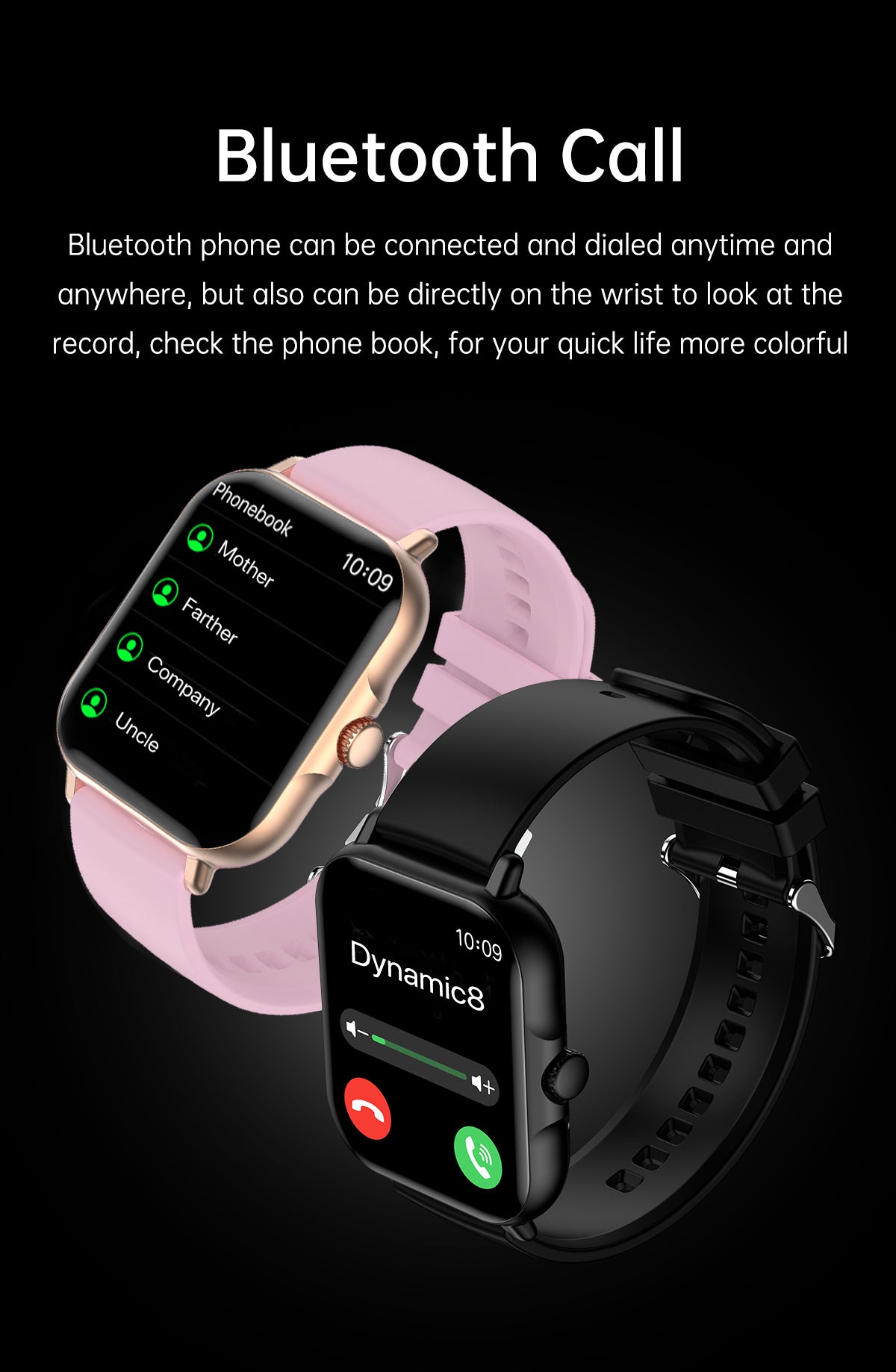 - Call Functionality: Answer and make calls directly from your wrist, ideal for busy individuals or those who prefer hands-free communication while on the move.