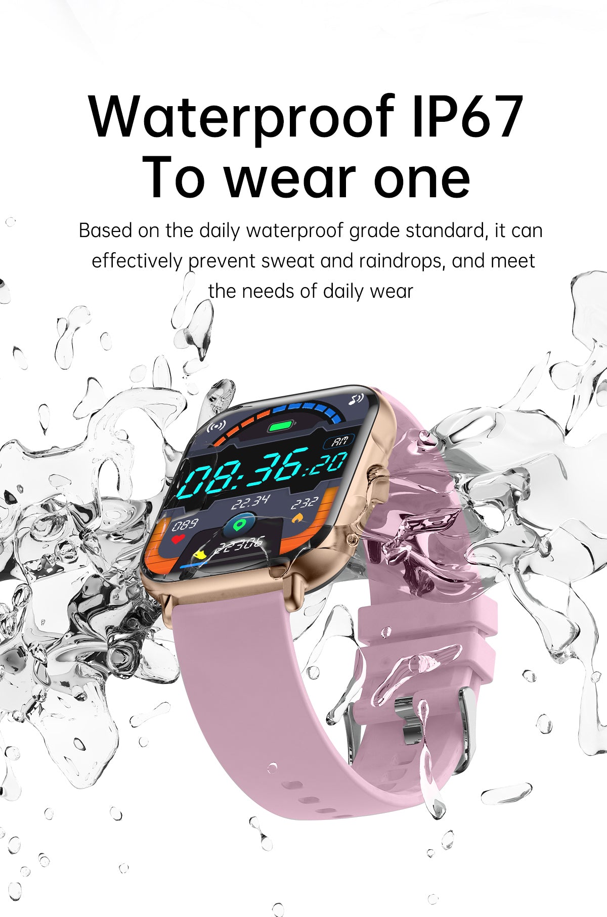 - Waterproof and Durable: With its IP67 waterproof rating, the watch is perfect for any activity, including swimming and outdoor sports, without the worry of water damage.