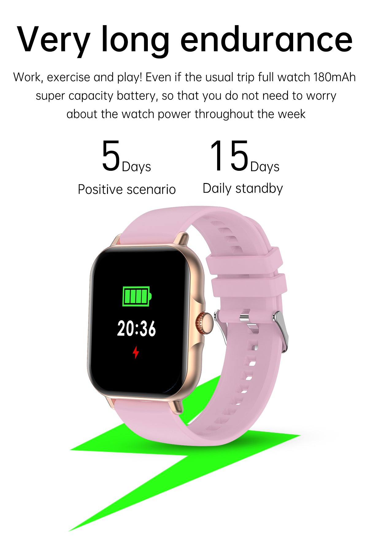 - Long Battery Life: Enjoy extended usage with long-lasting battery life, ensuring that your smartwatch stays powered throughout the day.