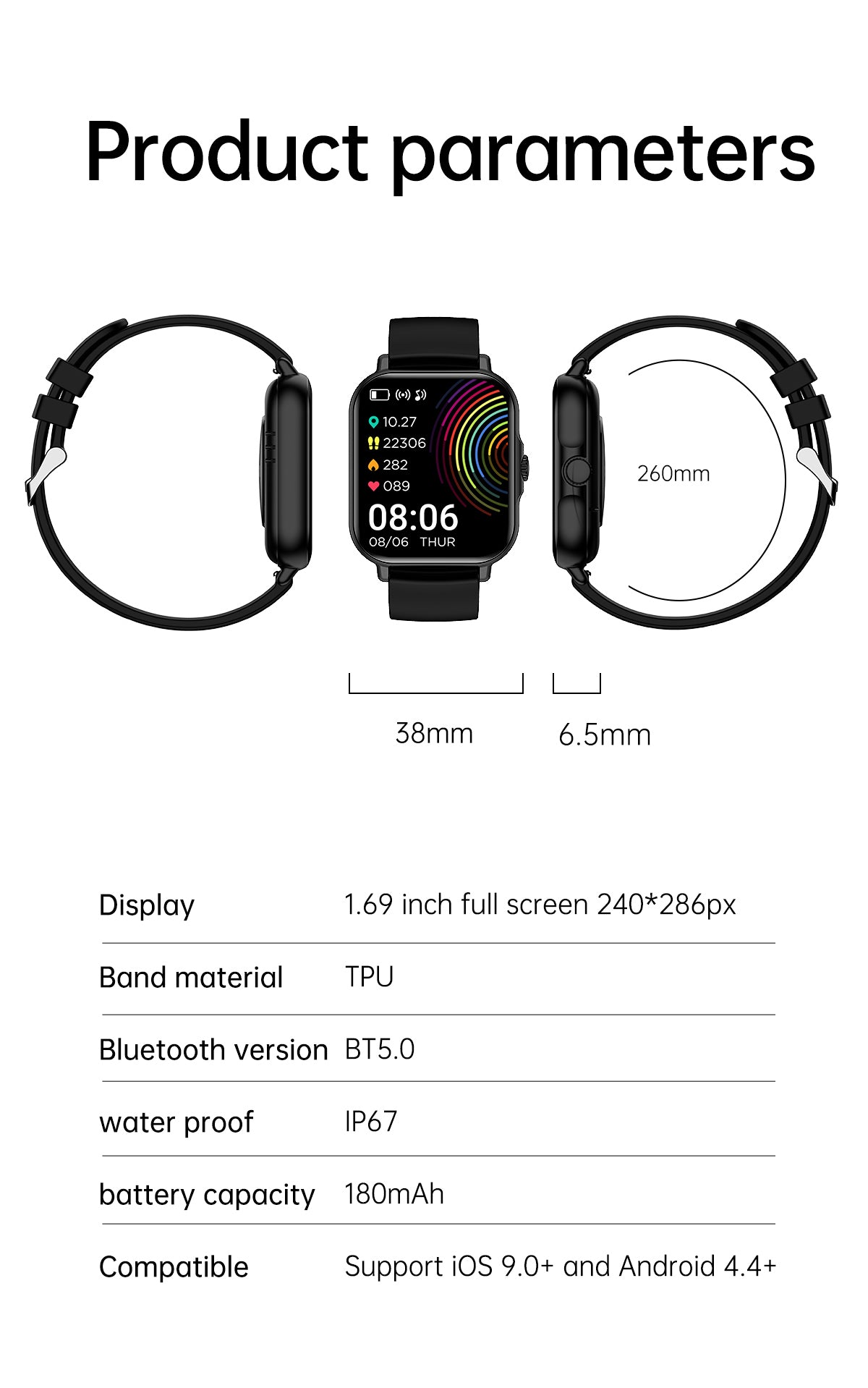 - Wide Compatibility: Whether you own an iPhone or Android device, this smartwatch seamlessly connects to your phone, allowing you to receive notifications, control music, and much more.